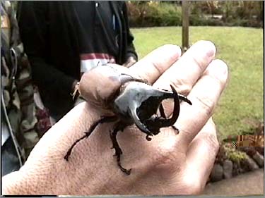 Rhinoceros beetle and author (what a grip!) - Tari, Papua New Guinea