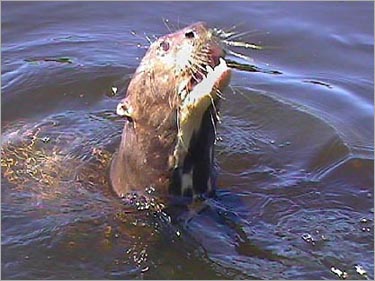 Giant otter (Pteronura Brasiliensis) reaches over two meters and 32 kg