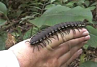 Rainforest millipede on author - Yasuni, N.P., Ecuador.